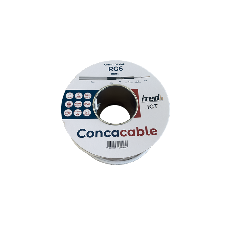 BOBINE 100M CABO COAXIAL RG6 (PVC) ITED - CONCACABLE