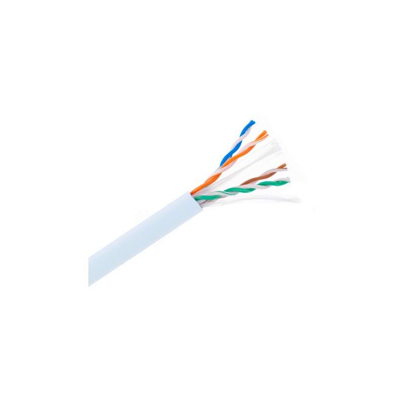 Produto de cor branca, fornecido em bobine de 305 m, indicado para redes estruturadas, com temperatura nominal até 75 °C e conformidade com as normas UL 444, ANSI/TIA-568.2-D, ISO/IEC 11801 e IEC 61156-5. Possui condutor em cobre isento de oxigénio (OFC) e isolamento em PE com codificação por cores, garantindo boa condutividade e fácil instalação. Com certificação CPR Dca, ensaio de chama IEC 60332-1-2 e revestimento LSZH, assegura maior segurança em caso de incêndio, sendo adequado para aplicações residenciais, comerciais e profissionais.
