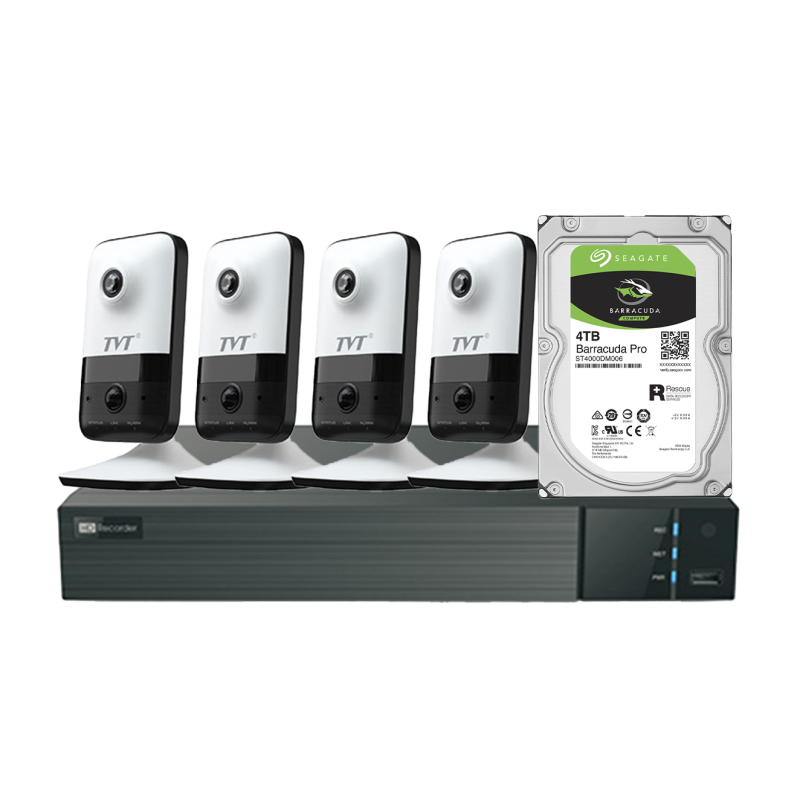 KIT CCTV IP NVR 4CH PoE+ 4 x CUBO POE 2MP 2.8mm + HDD2TB