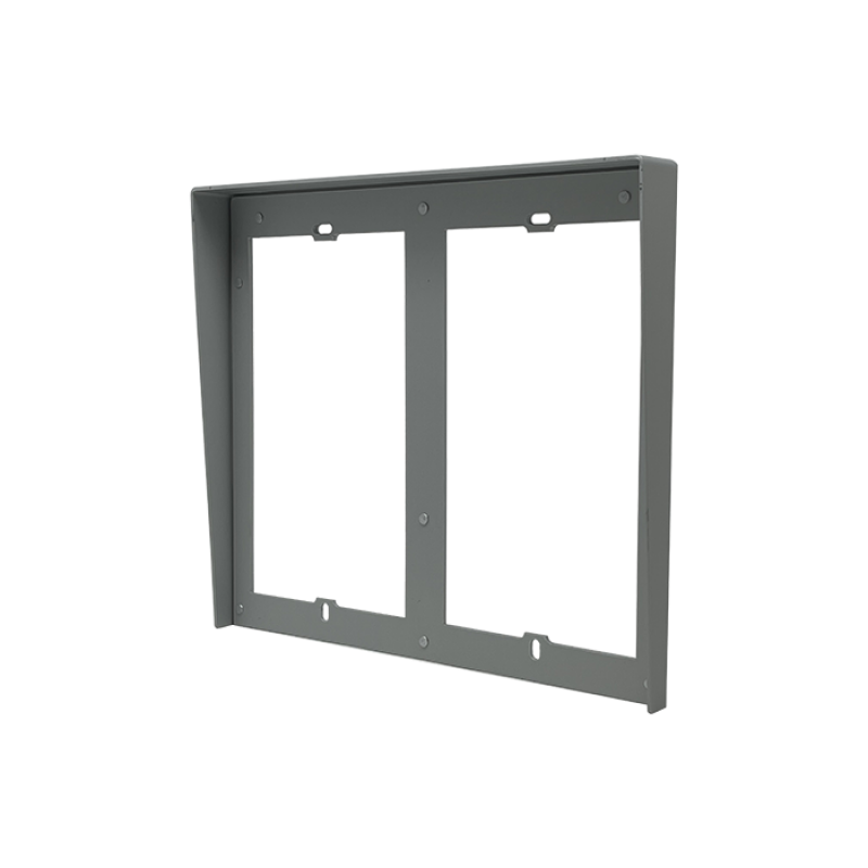 Viseira de proteção contra chuva para molduras de embutir de 6 módulos (2 suportes de 3 módulos lado a lado), compatível com botoneira Ultra. Fabricada em alumínio anodizado de cor cinza, garantindo resistência e durabilidade. Dimensões: 259 x 322 x 32 mm.