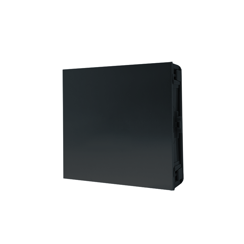 Módulo cego versão Full Metal para botoneiras Ultra, em cor preta RAL 9005. Revestimento em liga de alumínio anodizado, garantindo elevada resistência e durabilidade. Dimensões (L x A x P): 100 x 90 x 35 mm.