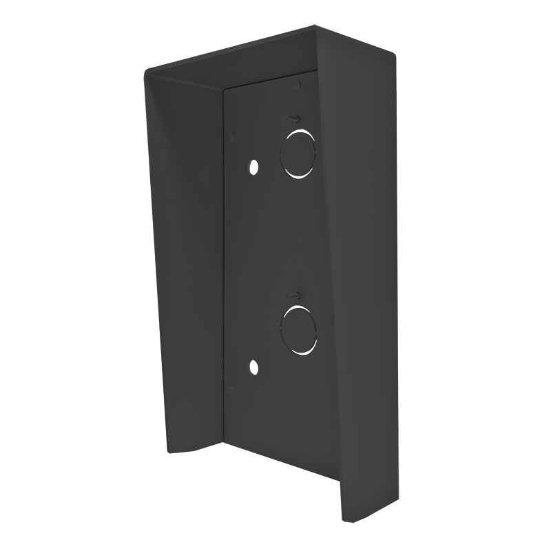 Viseira de proteção contra chuva para cobertura de parede de 4 módulos, compatível com botoneira Ultra, em cor preta RAL 9005. Fabricada em alumínio anodizado, garantindo resistência e durabilidade. Dimensões (L x A x P): 116 x 385 x 57 mm.