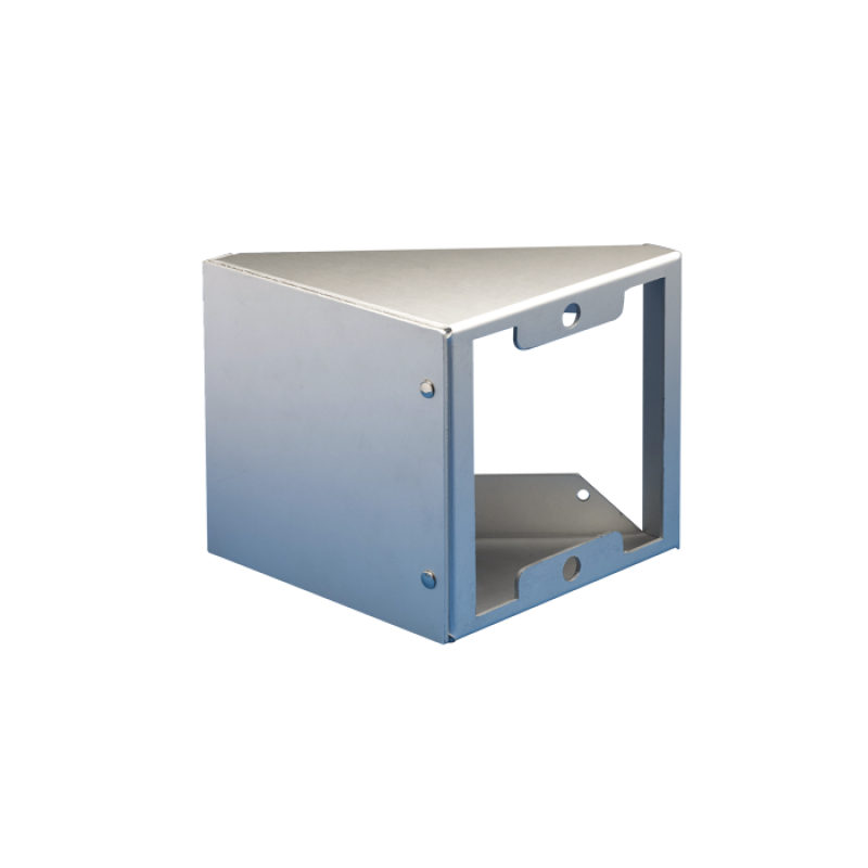 Caixa de inclinação a 45° para botoneiras Ultra, Powercom, Ikall e Ikall Metal, fabricada em alumínio. Permite a instalação na parede com inclinação lateral da botoneira na direção do utilizador, facilitando a utilização e melhorando a ergonomia. Dimensões: 183 x 354 x 100 mm.