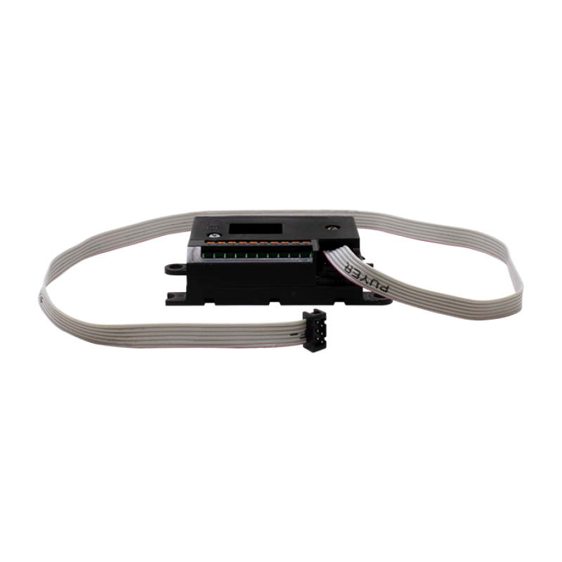 Interface para gestão de 8 botões, destinada à utilização em botoneiras monobloco. Compatível com todos os sistemas, funciona em conjunto com módulos áudio ou áudio/vídeo da série Ultra ou com grupos áudio ou áudio/vídeo da série EU. Fornecida com cabo com conectores para ligação ao módulo áudio ou áudio/vídeo ou a outras interfaces de botões, com comprimento de 475 mm. Dimensões (L x A x P): 74 x 42 x 18 mm.