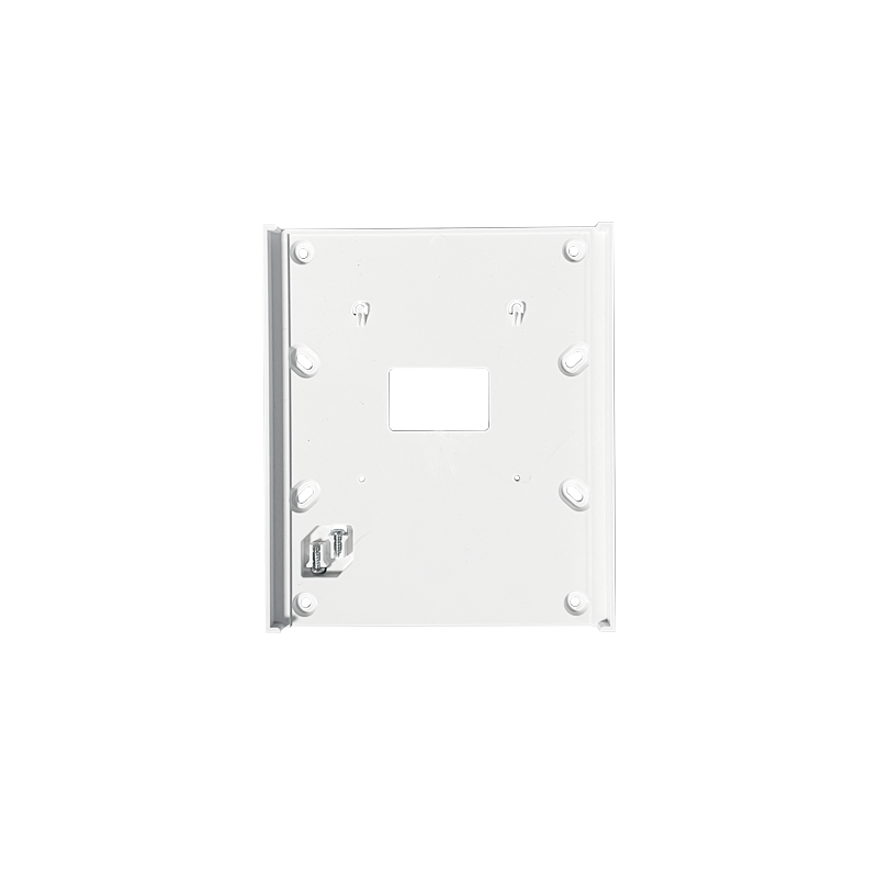 Suporte de parede para vídeo-intercomunicador mãos-livres da série People, que permite a passagem exterior dos cabos, facilitando a instalação. Dimensões (L x A x P): 135,4 x 158 x 17,1 mm.