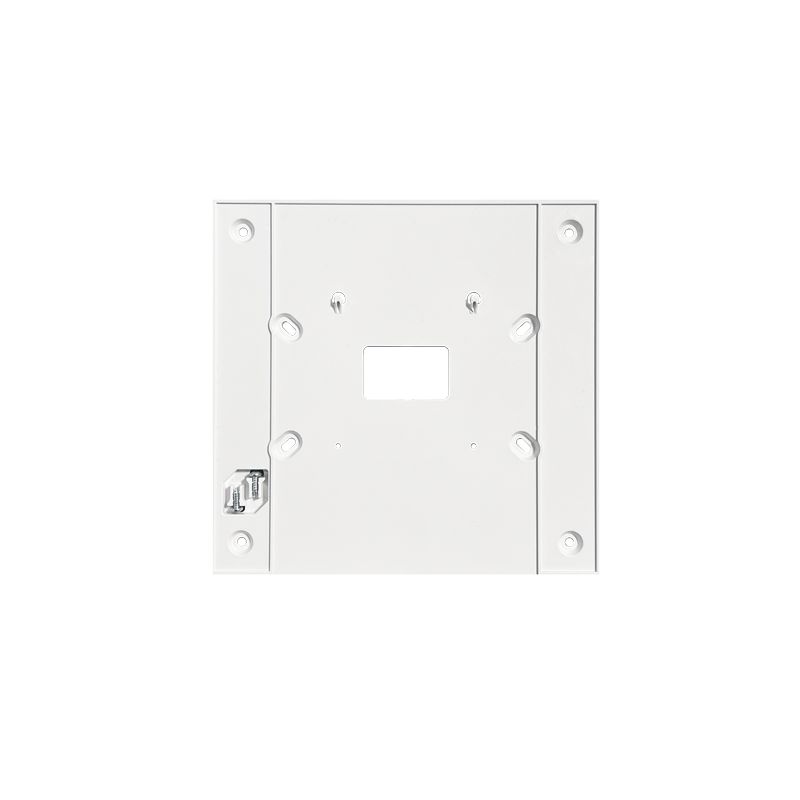 Suporte de parede para vídeo-intercomunicador com auscultador da série People, que permite a passagem exterior dos cabos, facilitando a instalação. Dimensões (L x A x P): 177,3 x 171,4 x 9,7 mm.