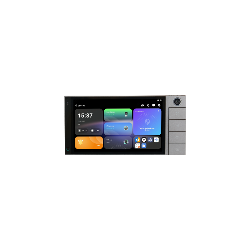 Sistema Processador principal: Processador incorporado Sistema operativo: Android 14 Tipo de botão: Mecânico Protocolo de rede: IPv4; RTSP; UDP; DNS; FTP; RTP; TCP; SIP Básico Tipo de ecrã: Ecrã sensível ao toque capacitivo Ecrã: Ecrã de 7 polegadas Resolução do ecrã: 1024 (A) × 600 (V) Compressão áudio: G. 711a; G. 711u; PCM Entrada de áudio: 1 canal Saída de áudio: Altifalante incorporado Modo de áudio: Áudio bidirecional Melhoria de áudio: Supressão de eco/redução de ruído digital Taxa de bits de áudio: 16 kHz, 16 bits Campo de visão: H: 75°; V: 47°; D: 83° Compressão de vídeo: H. 264 Resolução de vídeo: Fluxo principal: 1080P/720P/D1/WVGA/CIF/QVGA Fluxo secundário: 1080P/720P/D1/WVGA/CIF/QVGA Taxa de fotogramas de vídeo: PAL: 25 fps NTSC: 30 fps Taxa de bits de vídeo: 224 kbps–8,192 kbps Rede Wi-Fi: Sim Norma sem fios: IEEE 802.11b/g/n Gama de frequência sem fios: 2,4 GHz Potência máxima de transmissão: = 20 dBm a 2400-2483,5 MHz Bluetooth Norma sem fios: BR/EDR/BLE Gama de frequência sem fios: 2400-2483,5 MHz Potência máx. de transmissão: = 20 dBm a 2400-2483,5 MHz Bluetooth: Sim Portas RS-485: 1 USB: 1 Entrada de alarme: 8 canais Saída de alarme: 1 canal Saída de alimentação: 1 porta (12 V, 200 mA) Campainha: Sim (utilizar a porta de entrada de alarme) Porta de rede: 1 porta Ethernet 10/100 Mbps Geral Cor: Cinza Alimentação: 12 VDC, 2 A Padrão: PoE Instalação: Embutida Dimensões: 210,2 mm × 103,1 mm × 32,2 mm